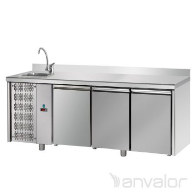 Hladilni pult s tremi vrati, delovna površina s kompletnim umivalnikom
